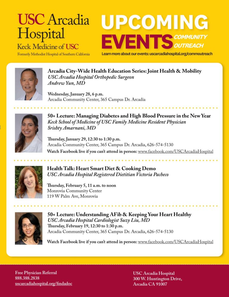 Upcoming Events from USC Arcadia Hospital Please click here for a PDF of information on…