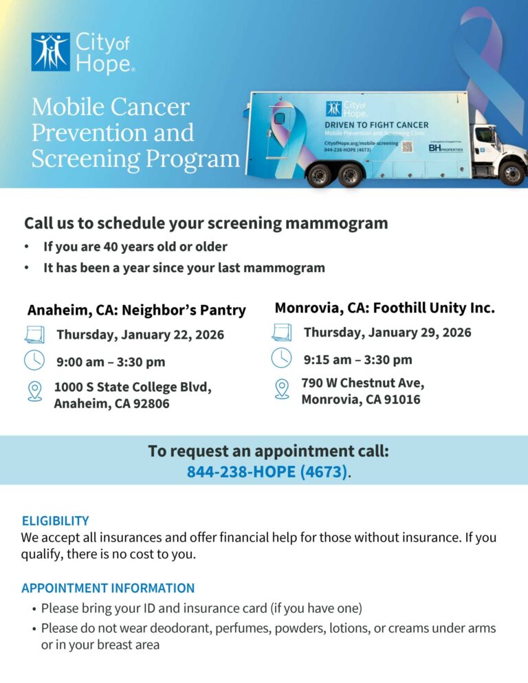 City of Hope Upcoming Mobile Cancer Prevention and Screening Program Schedule Please click here for…
