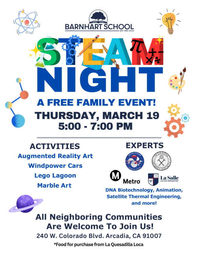 STEAM Night at Barnhart School – A Free Family Event on March 19 Please click here for a PDF of information on the Steam Night at Barnhart School